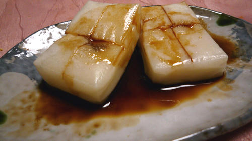 今日は焼いた餅に砂糖醤油をかけたもの。