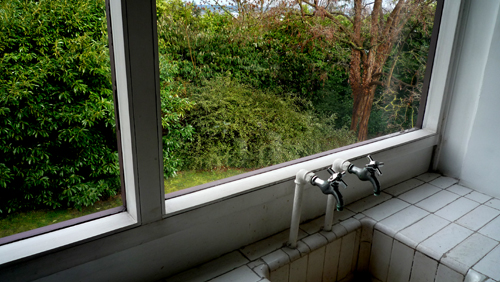 このデカい窓は引き戸。こんなでかいと開け閉めの時割れるんじゃないかとか思う。