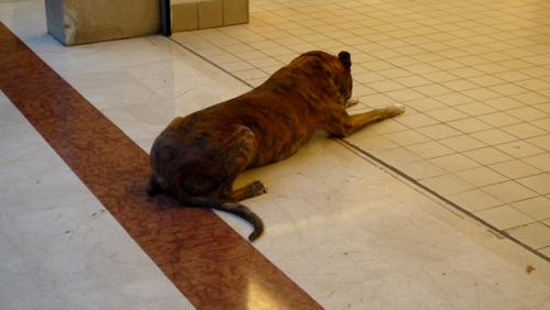 ホテルに戻る途中で近くのスーパーに寄ると虎のような犬がいた。