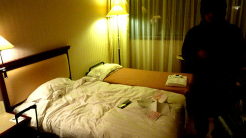 部屋はこんなん。二人部屋なのに三人泊まりだから1人は簡易ベッド。w